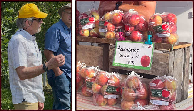 Images: David Bedford, UMN researcher who is renowned for his work breeding apple varieties like Honeycrisp, spoke at the 2025 Minnesota Apple Growers Association summer tour about the difference between an apple sport and true cultivated variety. This topic led into more discussion about various Honeycrisp sport varieties, including Premier Honeycrisp™ and Royal Red Honeycrisp™.
